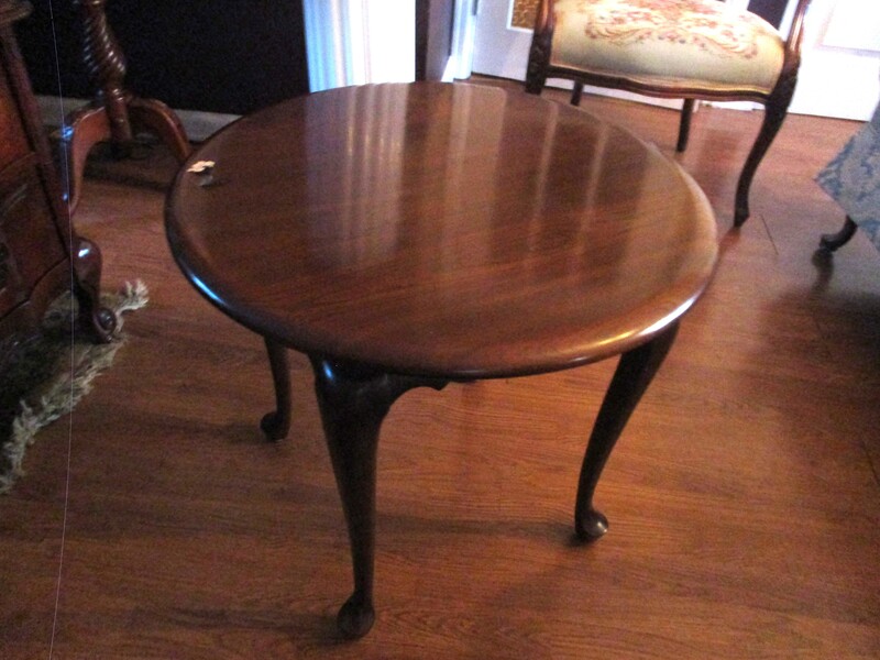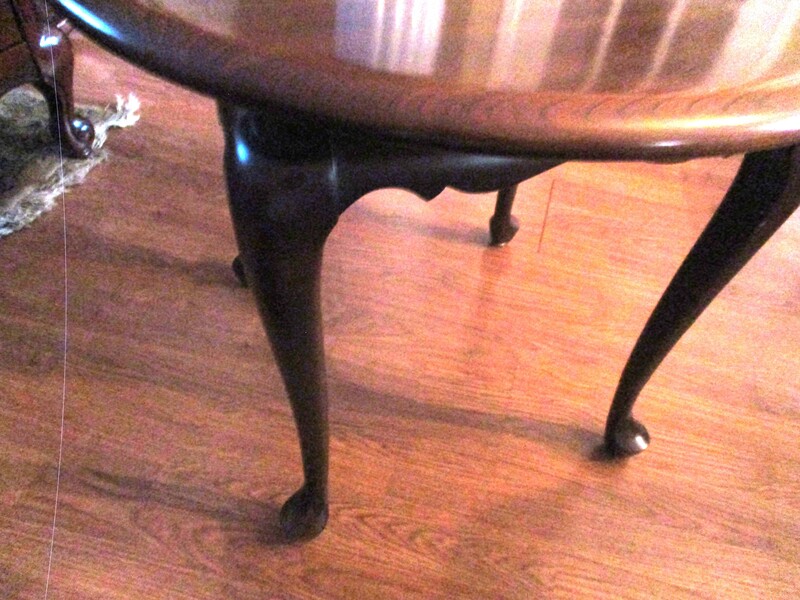 Petite table ronde d'appoint en merisier et pattes galbées. 24 po de diamètre et 22 po de hauteur
