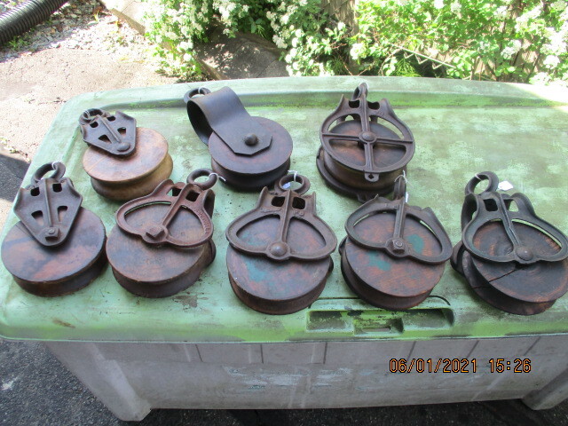 Poulies simples en bois avec armature en métal. Très bonne condition