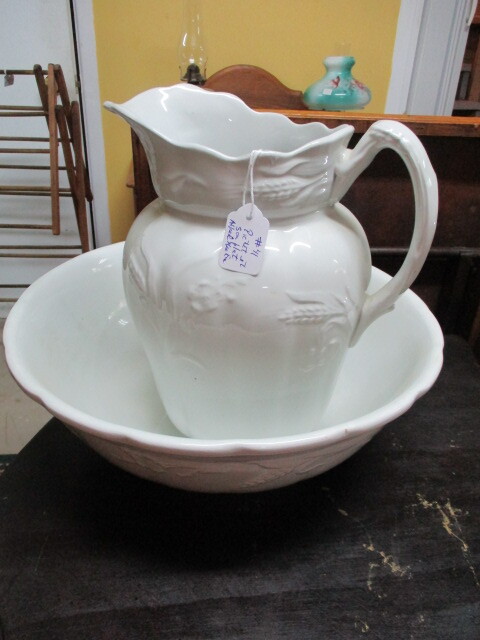 Plat lave-main et son pichet à motif d'épis en porcelaine anglaise de marque Alfred Meakin, England Plat de 15" de diamètre et pichet de 11" de hauteur. Impeccable