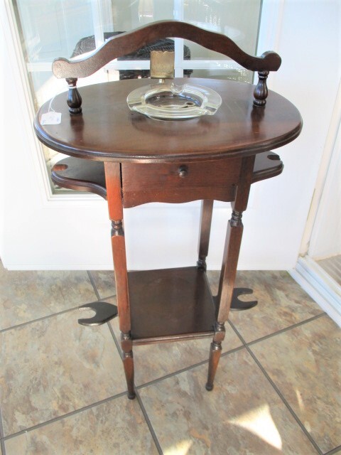 Oariginal tabatière avec cendrier, porte allumettes et 4 accroches-pipe sur les côtés. Un tiroir 15½" X 11½" X 30"H