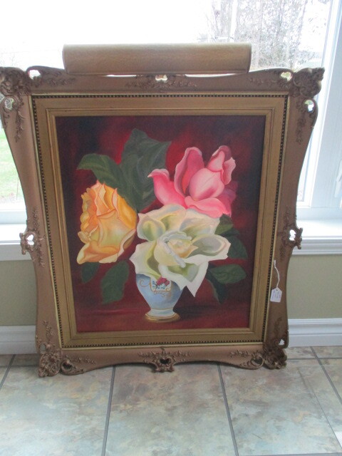 Peinture de Manon Poliquin de 2007 dans un cadre ancien avec lumière. Couleurs riches et éclatantes 27½" X 35" de hauteur