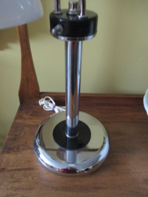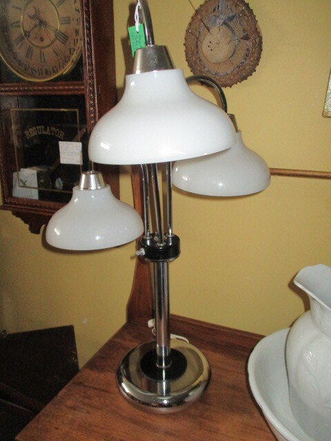 Lampe de table " Vintage" en chrome avec 3 abats-jours en plastique. 17" de diamètre par 28" de hauteur