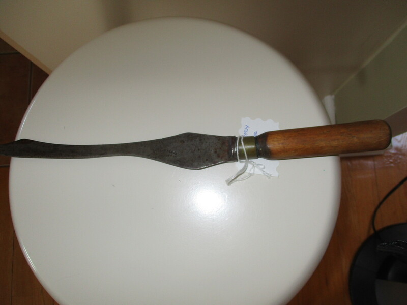 Tres ancien couteau a poisson avec manche de bois et bague de brass. 14po de longueur
