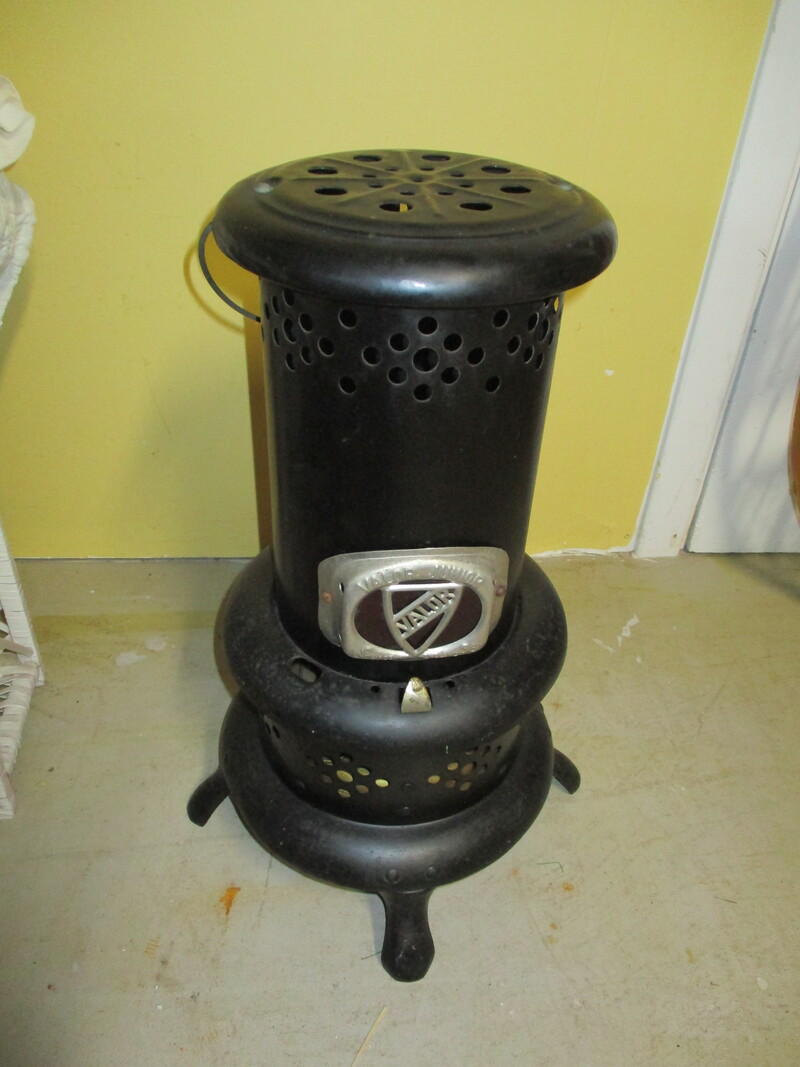 Poêle au kérosène antique en bon état. Vers 1925 10 po de diamètre par 20 po de hauteur