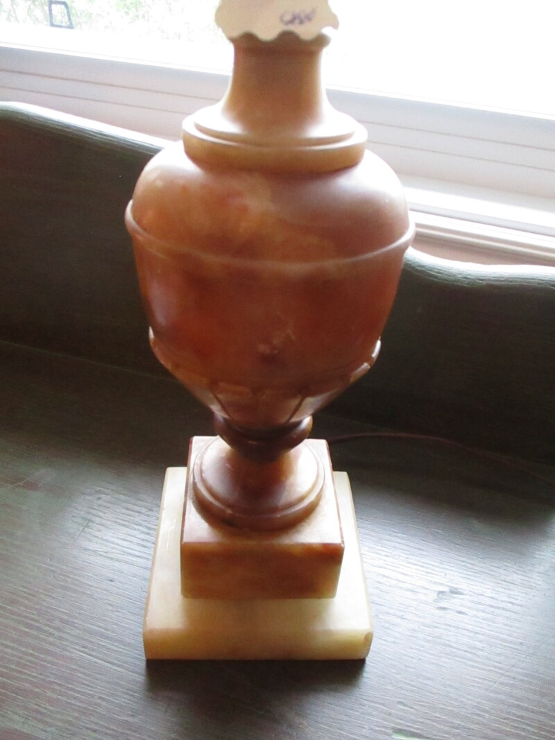 Lampe a base en marbre brun avec abat-jour. 9 po de diamètre par 2 po de hauteur