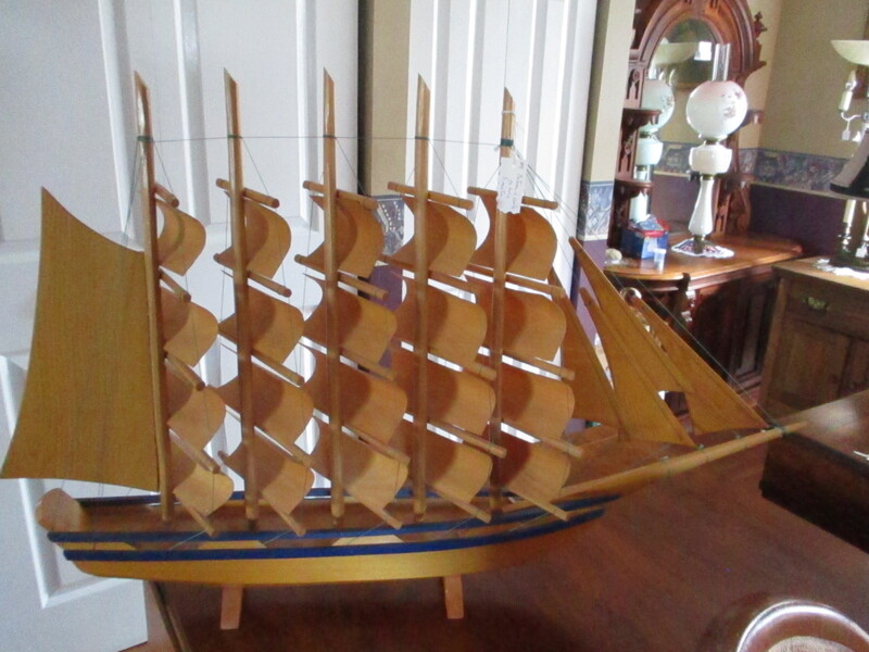 Bateau a voile en bois, 5 mats. Parfaite cpondition. 3 pi de largeur par 2 pi de hauteur