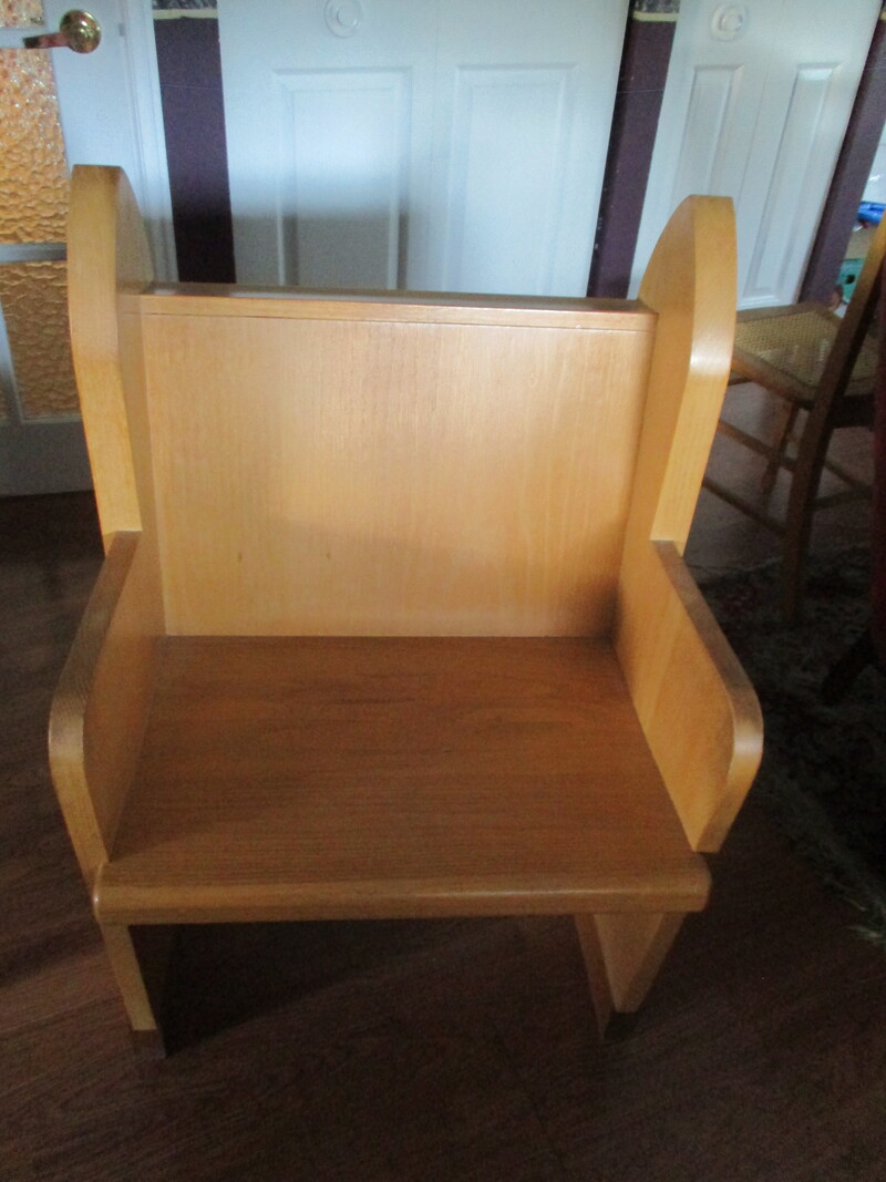 Petit banc dMéglise servant de banc a l'officiant de la messe. En chêne avec croix ciselée de chaque côté. Provient de l'église de St-Denis de Brompton. 23 X 21 X 36 po de hauteur