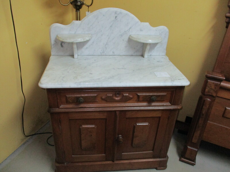 Très beau chiffonnier victorien en noyer avec dessus en marbre. Vers 1870. Un tiroir et 2 portes de rangement. 32 X 17 X 41 po de hauteur
