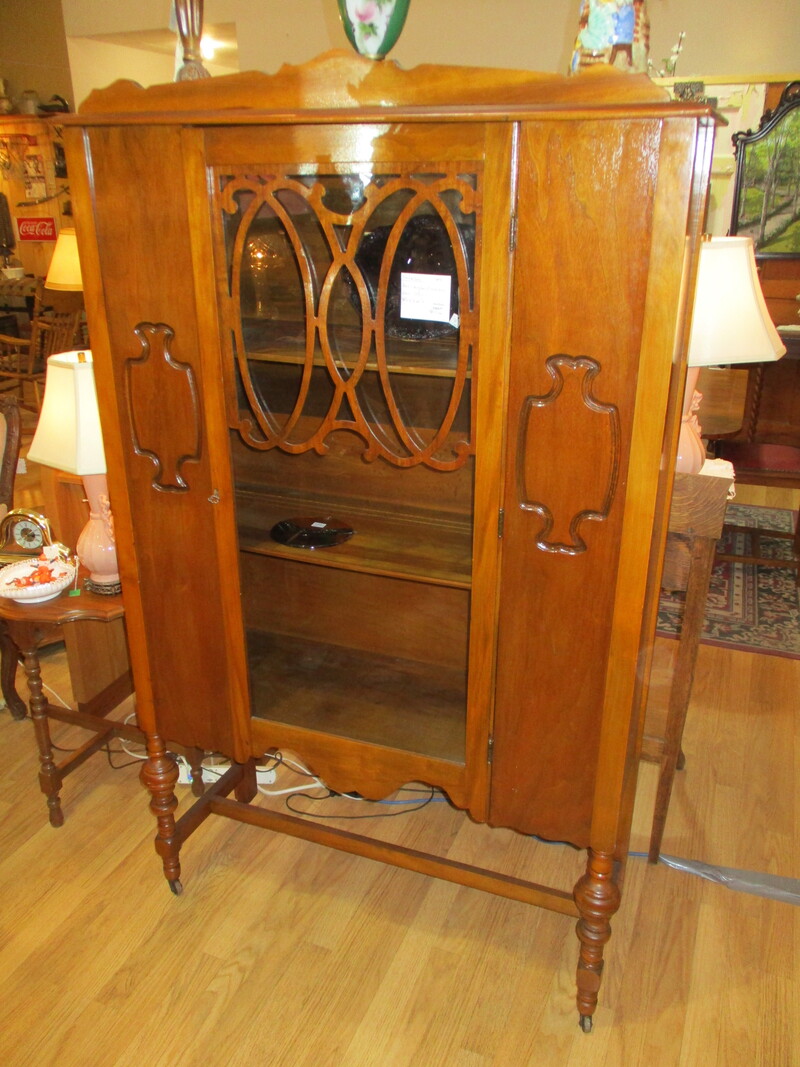 Vaisselier de style Art Déco en merisier des années 1930. 40 X 15 X 66 po de hauteur