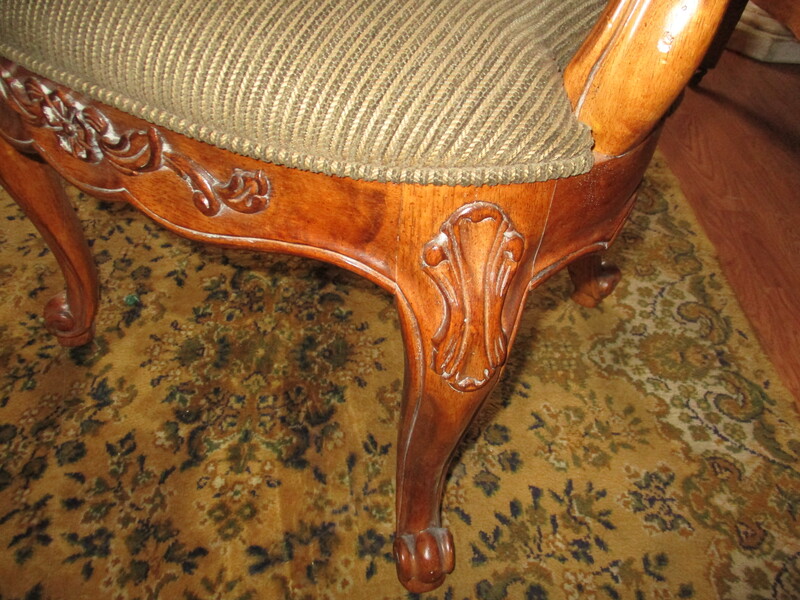 Fauteuil de style Louis XV acheté a l'époque chez N.W. Décor de Sherbrooke, sculpté au haut du dossier et au bas du siège. Les 4 pattes sont galbées. En très bonne condition