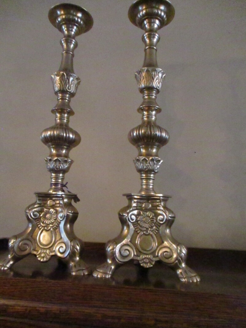 Paire de chandeliers d'église en brass solide. 18 po de hauteur